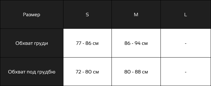 Таблица размеров